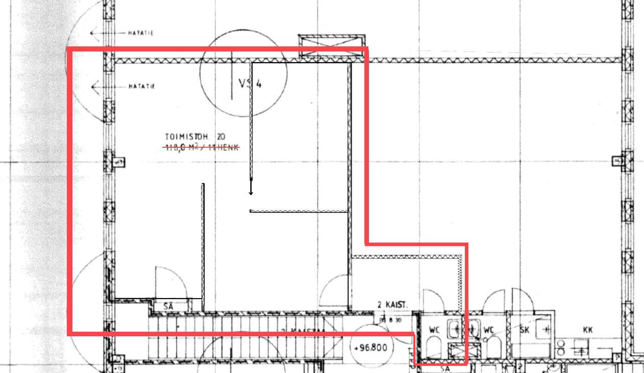 118m2 toisen kerroksen siisti toimistohuoneisto. Nyt jaettu kahdeksi toimistoksi- yhdistämme tilat nopeasti tarvittaessa!